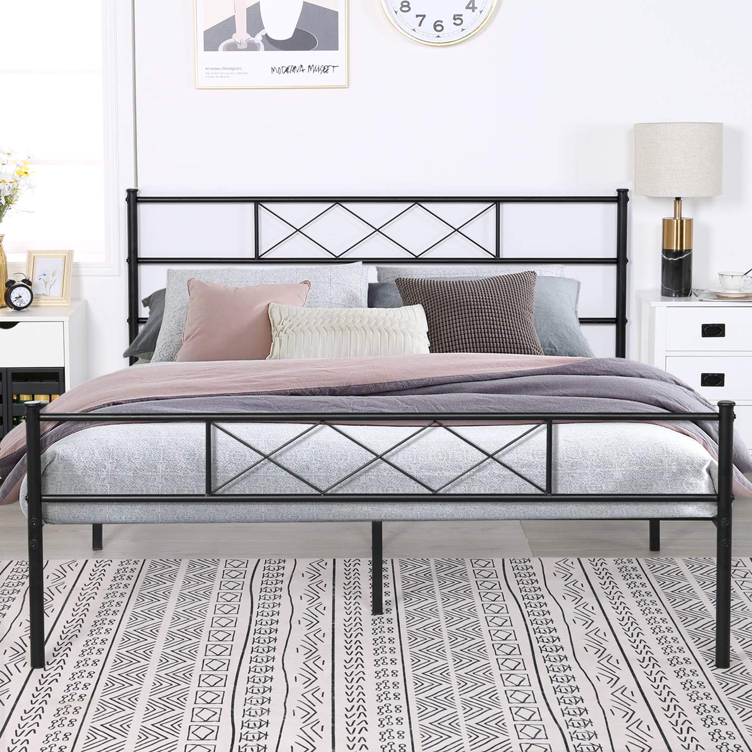 Zizin King Metal Platform Bed Frame With Headboard And Footboard Heavy Duty Steel Slat Support Mattress Foundation Easy Assembly Noise Free Anti Slip Amazon In Home Kitchen