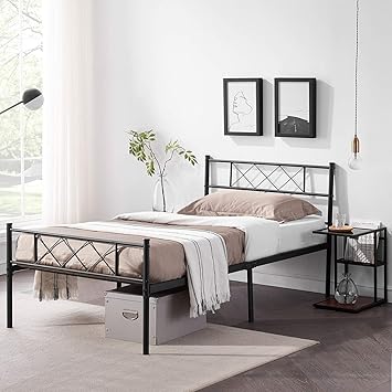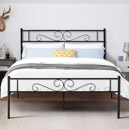 Vecelo Metal Platform Bed Frame Mattress Foundation With Vintage Headboard Footboard Easy Assembly Full Black Amazon In Home Kitchen