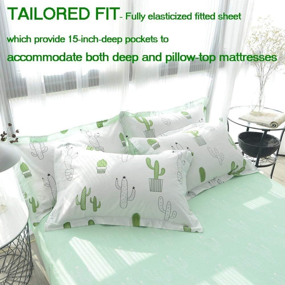 Xukeju 100 Cotton Printing Cactus Fitted Sheet Queen Size 60x80 With 15 Deep Pocket Design Patterns Green Mattress Cover For Kids Adults Kids Bedding Sheets Pillowcases