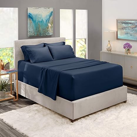 Buy Extra Deep Pocket Bed Sheets 6 Piece Deep Pocket Queen Size Sheets Navy Deep Bed Sheets Deep Fitted Sheet Set Super Deep Sheets Fits 18 Inch To 24