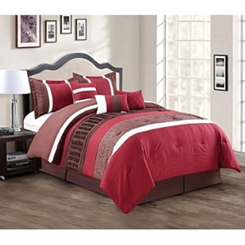 Buy 7 Pieces Luxury Red Grey And White Quilted Linen Comforter Set Bed In A Bag King Size Bedding Online At Low Prices In India Amazon In
