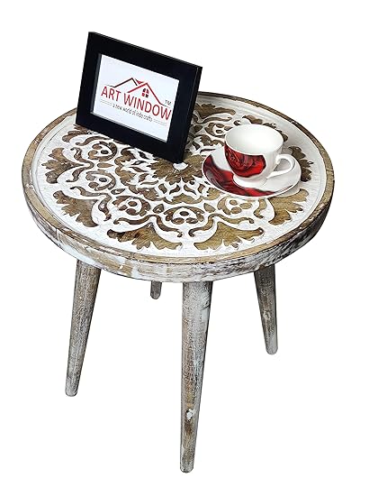 Art Window Hand Crafted Four Legged Wooden Medium Sized Decorative Coffee Table Center Table Accent Table End Table Night Stand Table For Your Home Office Club Pub Medium White Distressed 5 Amazon In Home Kitchen