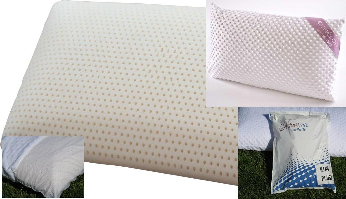 Rejuvenite Natural Low Profile Pillow. The extremely resilient make of the Latex International. Available in Queen and King sizes.