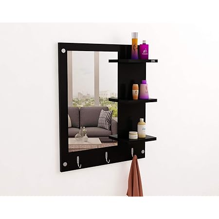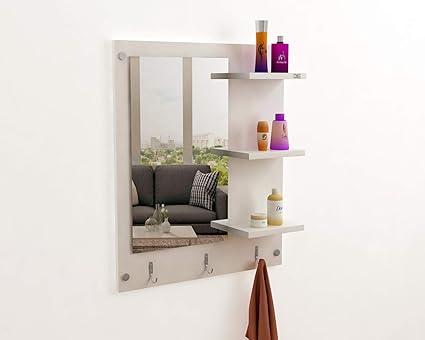 Das Wall Mount Makeup Vanity Dresser Dressing Mirror Glass Table And Multipurpose Rack Shelves With Elegant Double Stainless Steel Hooks White Evelyn Amazon In Home Kitchen