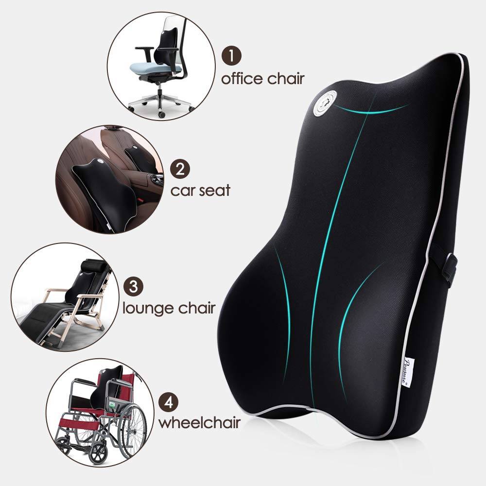 Lumbar Support For Office Chair Powsure Memory Foam Back Cushion Pillow With 3d Mesh Cover Large Breathable Ergonomic Lower Pain Relief Orthopedic Backrest For Car Seat Wheelchair And Recliner Back Seat Cushions