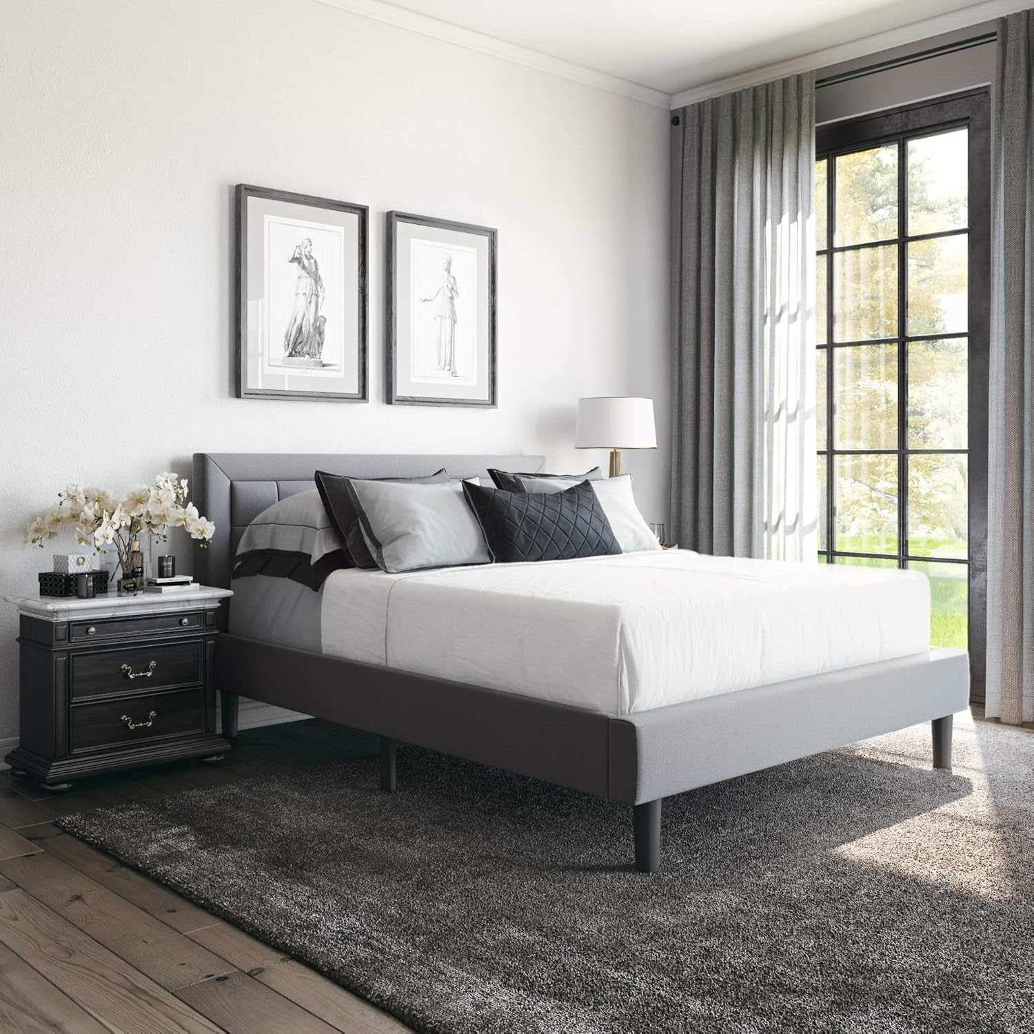 Classic Brands Decoro Wellesley Upholstered Platform Bed Headboard And Metal Frame With Wood Slat Support Grey Queen Amazon In Home Kitchen