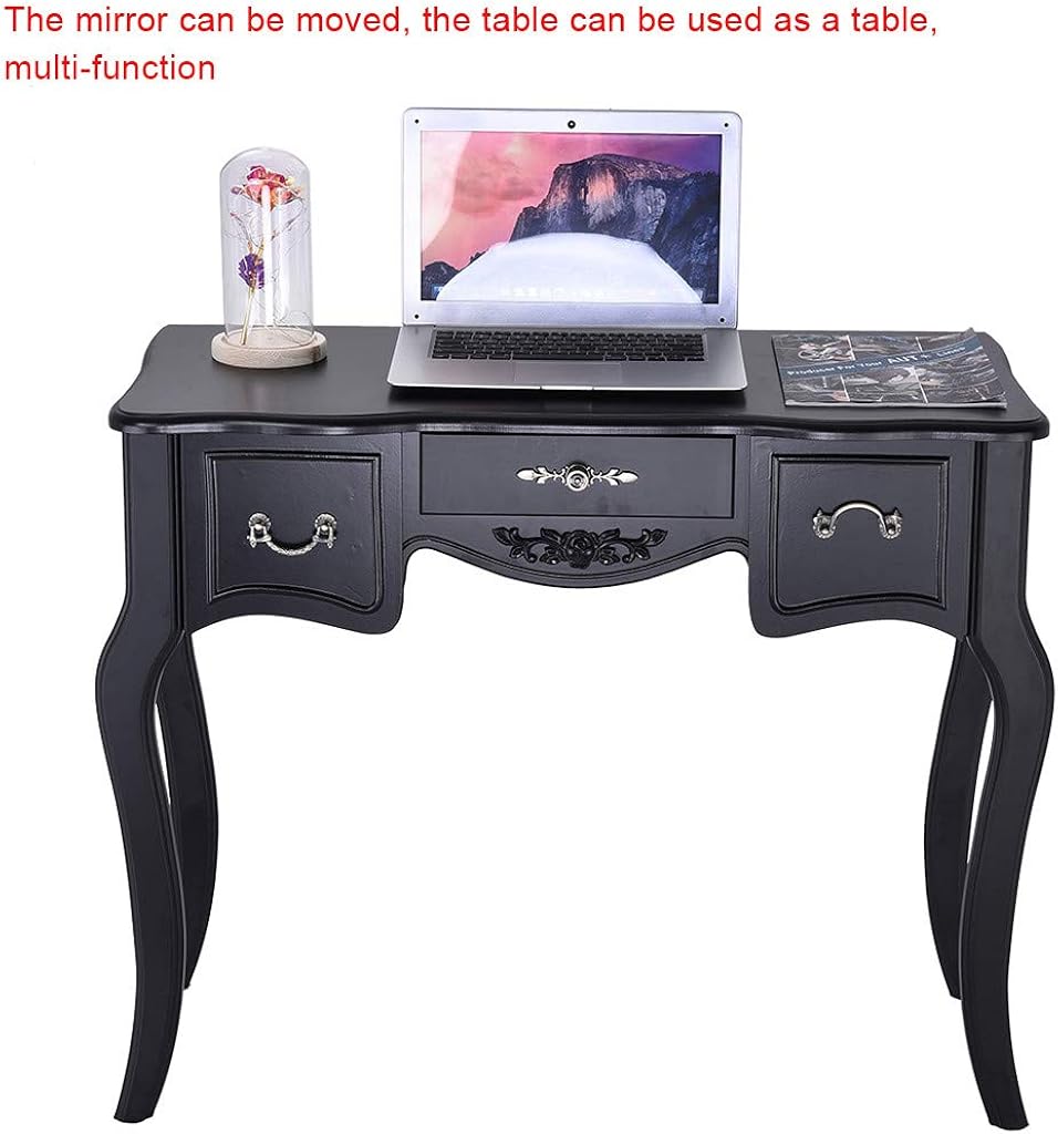 Black Pollyhb Vanity Table Makeup Vanity Set With Flip Top Mirror Cushioned Stool With 2 Drawers