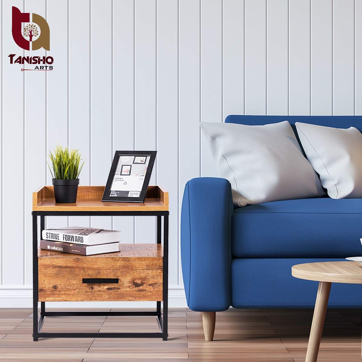 Tanishq Side Table Two Tiers End Table W Drawer Handle Solid Steel Metal Pipe Frame For Living Room Bedroom Sofa Storage Nightstand Amazon In Home Kitchen