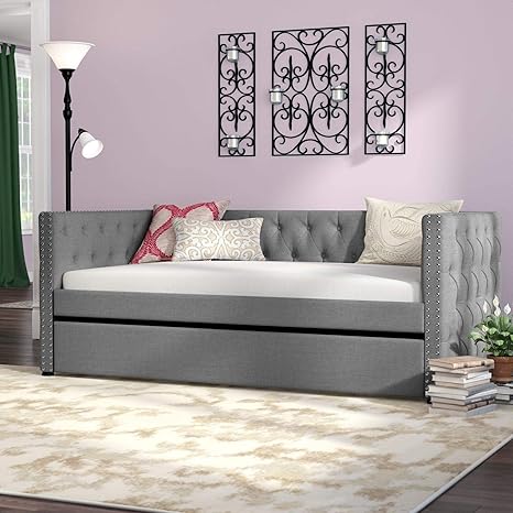 Twin mattress to complete the look not included while a 6. Built on a solid and engineered wood frame it is upholstered in polyester with an elegant gray hue for a piece that works with your current color palette. New offers Twin Daybed with Trundle HarperBright Designs Upholstered Fog Fabric Jagger Daybed with Roll Out Trundle Set Sturdy Wood Frame Sofa Bed Accommodate Twin Size Mattresse for Living Room Guest Room 50 out of 5 stars 1 Classic Brands Mornington Upholstered Platform Bed.