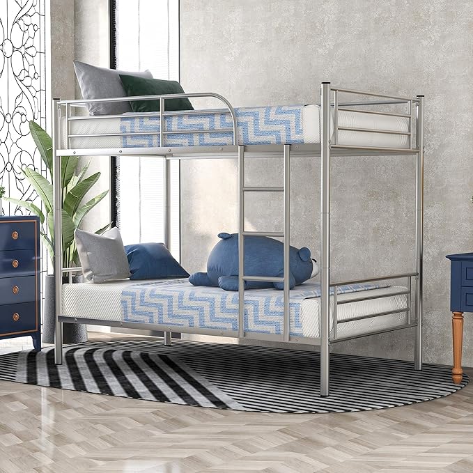 Amazon Com Mecor Twin Over Twin Metal Bunk Bed Removable Bunk Beds Frame With Ladder For Boys Kids Adults Teens Silv Metal Bunk Beds Bunk Beds Twin Bunk Beds
