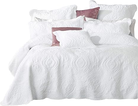 Amazon Com Thseum Bedspread For Queen Beds Damascus Embroider Bed Cover Lightweight Soft Coverlet Pre Washed White Quilt Queen Kitchen Dining