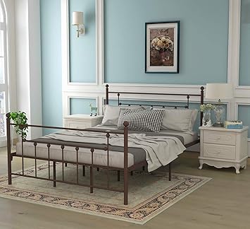 Vintage Sturdy Metal Bed Frame Queen Size With Vintage Headboard And Footboard Platform Base Bed Frame No Box Spring Needed Steel Bed Antique Brown Queen Amazon In Home Kitchen