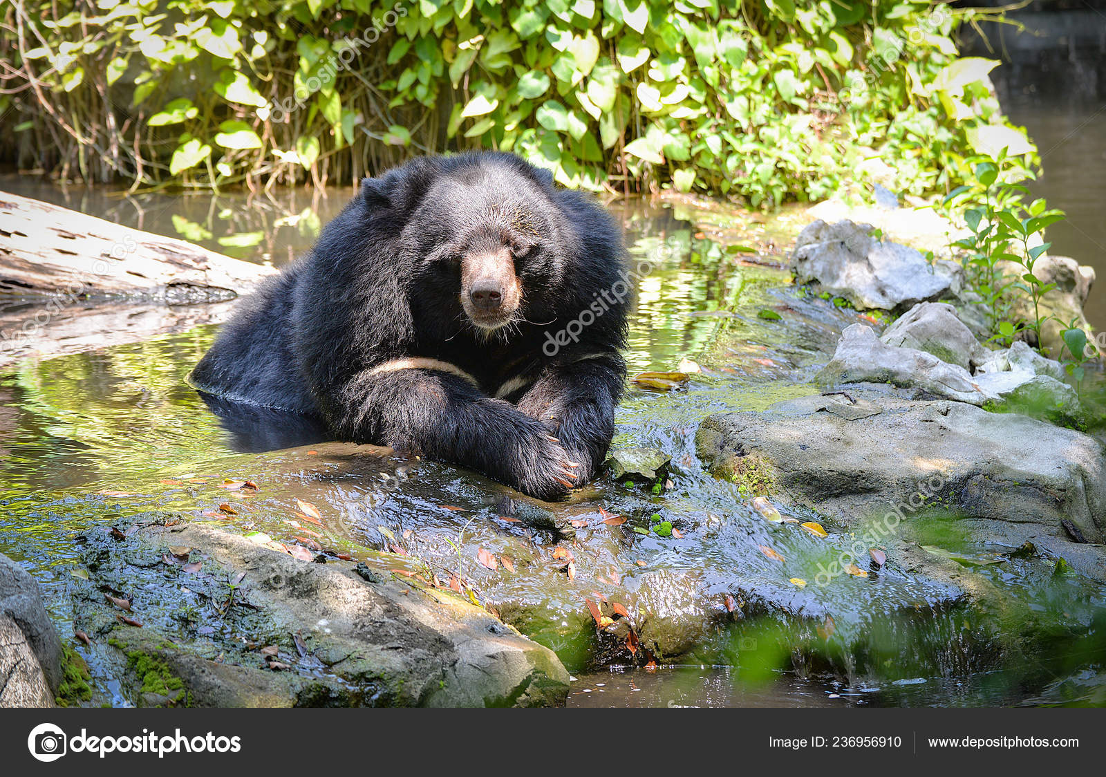 Asian Black Bearalso Known As Asiatic Bear Or White Chest Bear Or Moon Bear Resting In A Rock Stock Image Image Of Species Bearalso 177334859