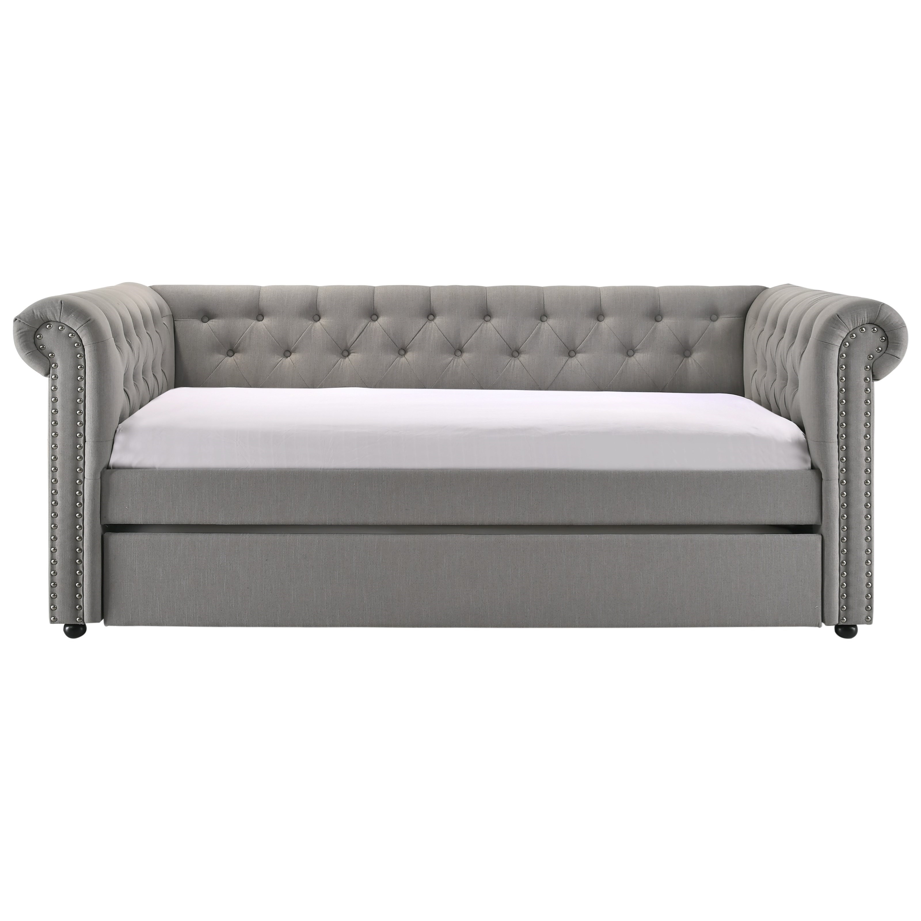 Crown Mark 5335 Grey Upholstered Daybed With Button Tufting And Pull Out Trundle Bed A1 Furniture Mattress Daybeds