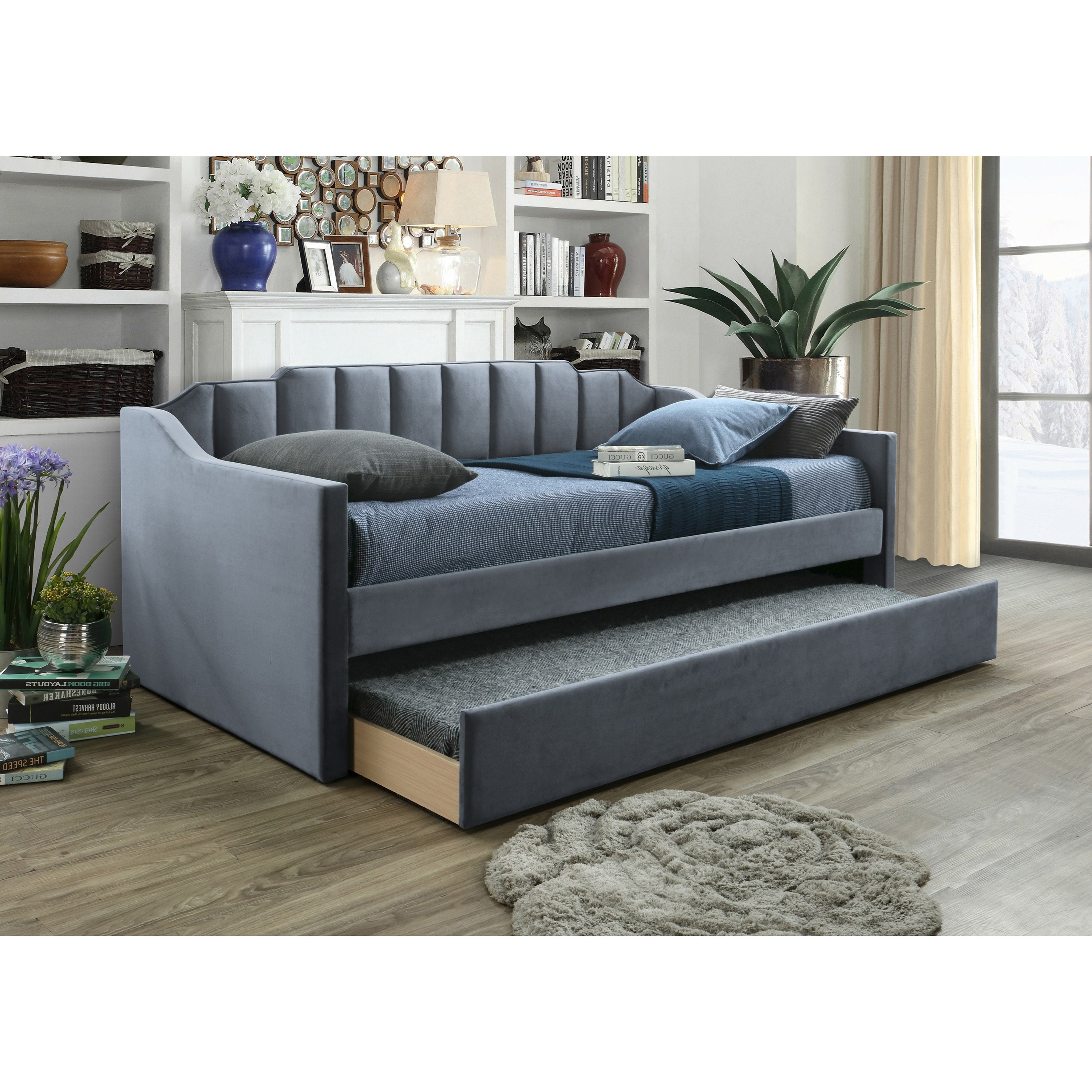 More Buying Choices 29899 4 new offers Extending Daybed with Trundle Twin Size Trundle Daybed Solid Wood Roll Out Trundle Accommodate Twin Size Mattresses. Solid Wood Frame Twin Daybed with Pull Out Trundle Twin Size Trundle DaybedTwin Daybed Frame Wood No Box Spring Needed Easy Assembly White 50 out of 5 stars 1. Novogratz Vintage Upholstered Full Twin Trundle Set Daybed Blue Velvet.