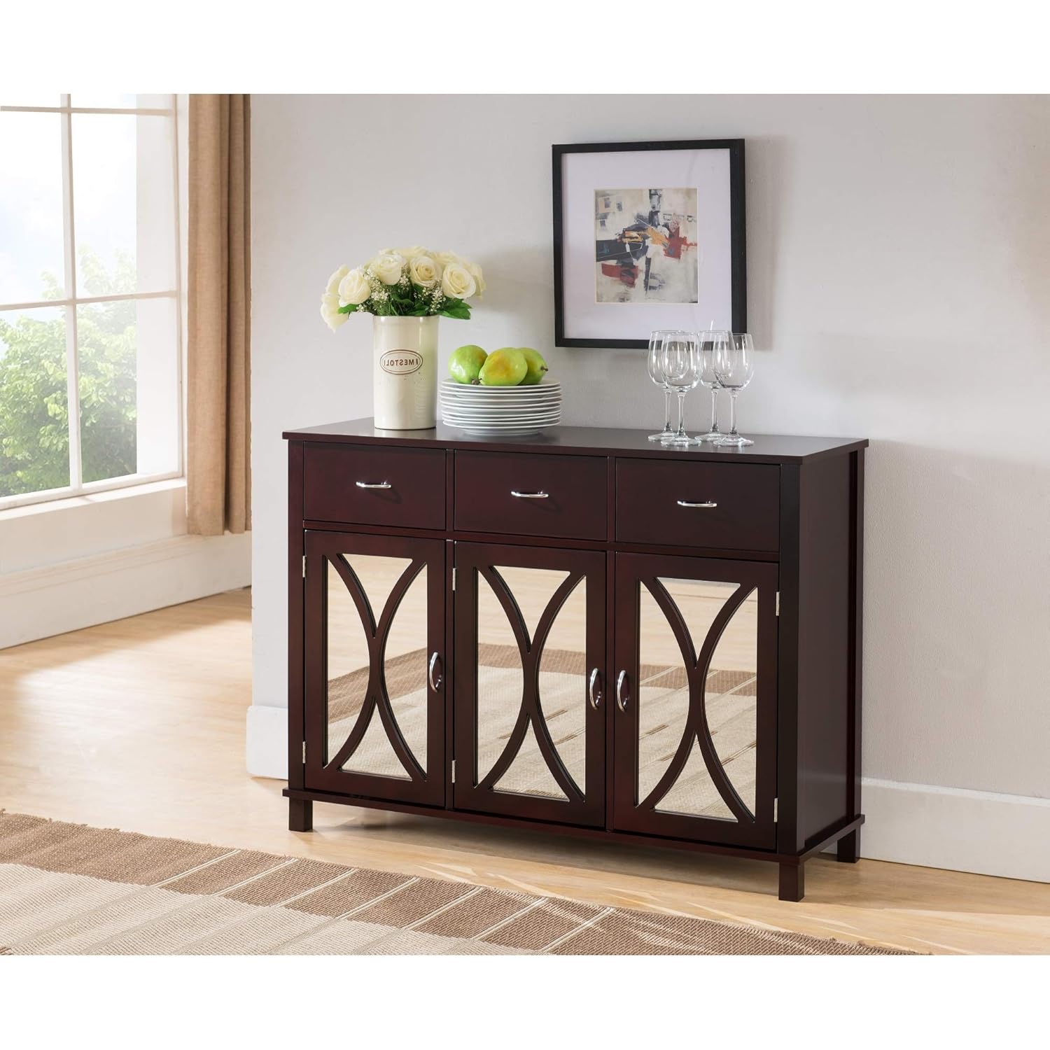 Espresso Wood Sideboard Buffet Server Console Table With Storage Drawers Mirrored Cabinet Doors Amazon In Home Kitchen