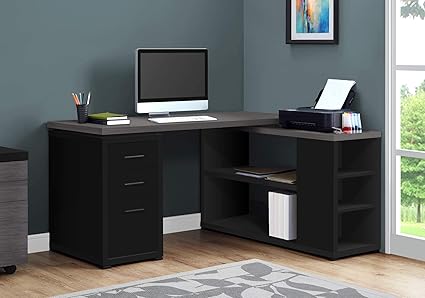 Monarch Specialties Computer Desk L Shaped Corner Desk With Storage Left Or Right Facing 60 L Black Grey Top Amazon In Home Kitchen