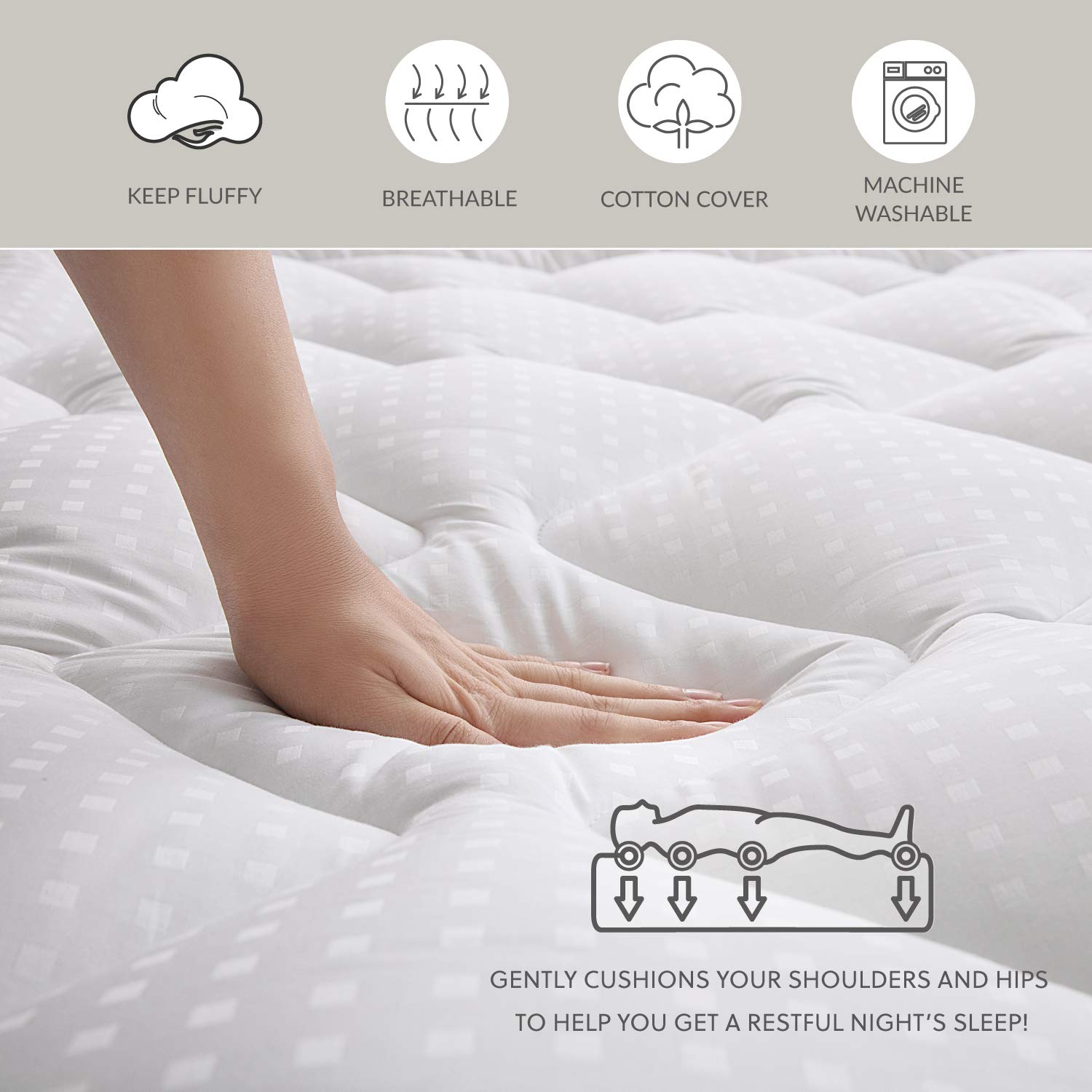 Amazon Com Whatsbedding Pillow Top Mattress Pad King Size Mattress Topper King Size 100 Cotton Top Down Alternative Filling Pillowtop Mattress Topper Cover Fitted Quilted 8 21 Inch Deep Pocket Home Kitchen