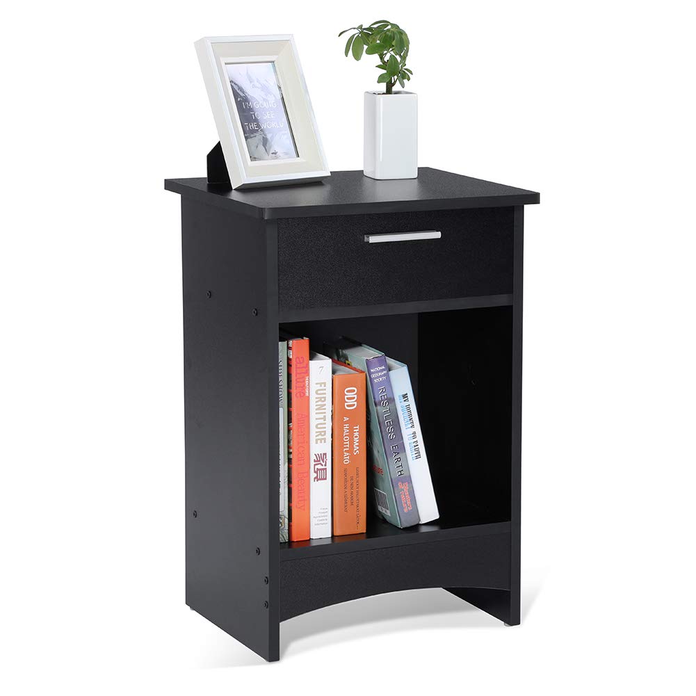 Topeakmart Black End Table With Bottom Drawer And Open Storage Shelf For Living Room Sofa Side Table More Black End Tables Wood End Tables Sofa Side Table