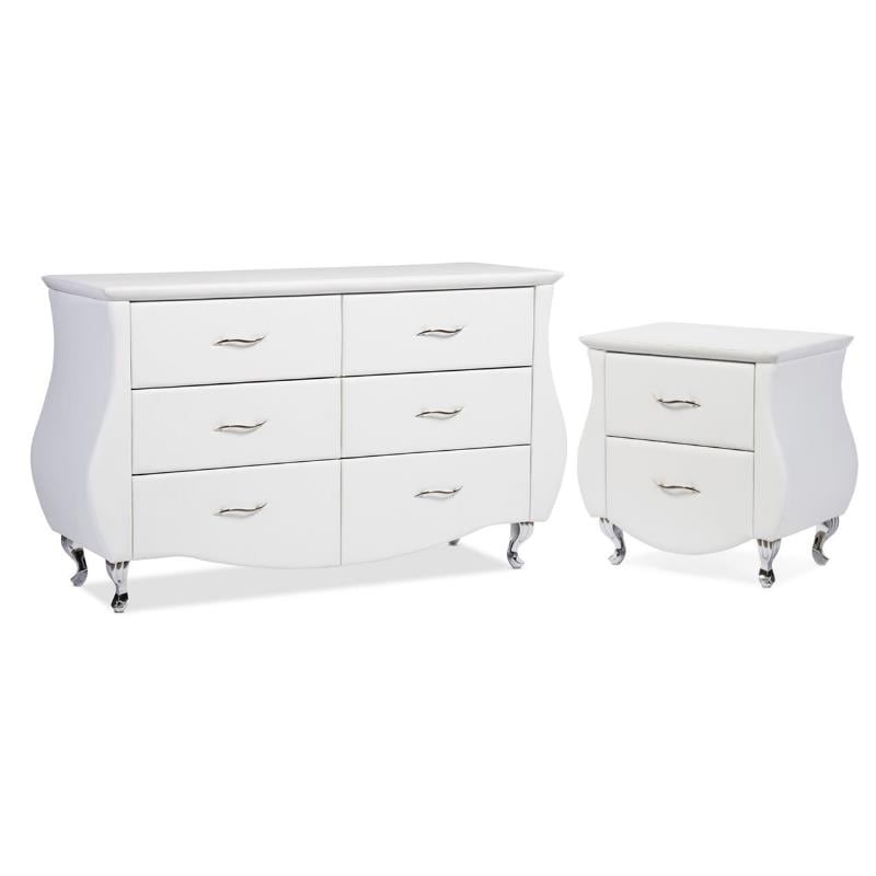 Enzo 2 Piece Faux Leather Double Dresser And Nightstand Set In White 1902152 Pkg