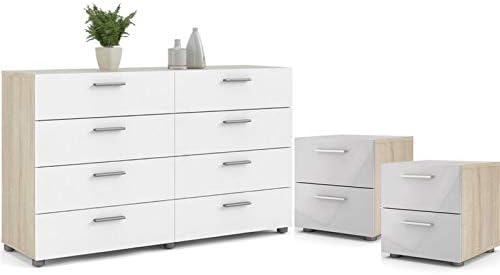 Amazon Com Home Square Contemporary 3 Piece Bedroom Set With Two Nightstands And 8 Drawer Double Dresser In Oak And White Gloss Furniture Decor