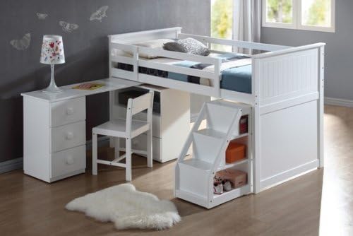 Amazon Com Wyatt White Finish Wood Twin Size Loft Bed With Pull Out Desk Work Station Underneath And Slide Out Stairs With Storage Everything Else