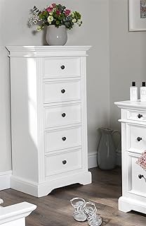 Romance Antique White 5 Drawer Tallboy With Crystal Handles White Narrow Chest Of Drawers Quality Fully Assembled Amazon Co Uk Kitchen Home
