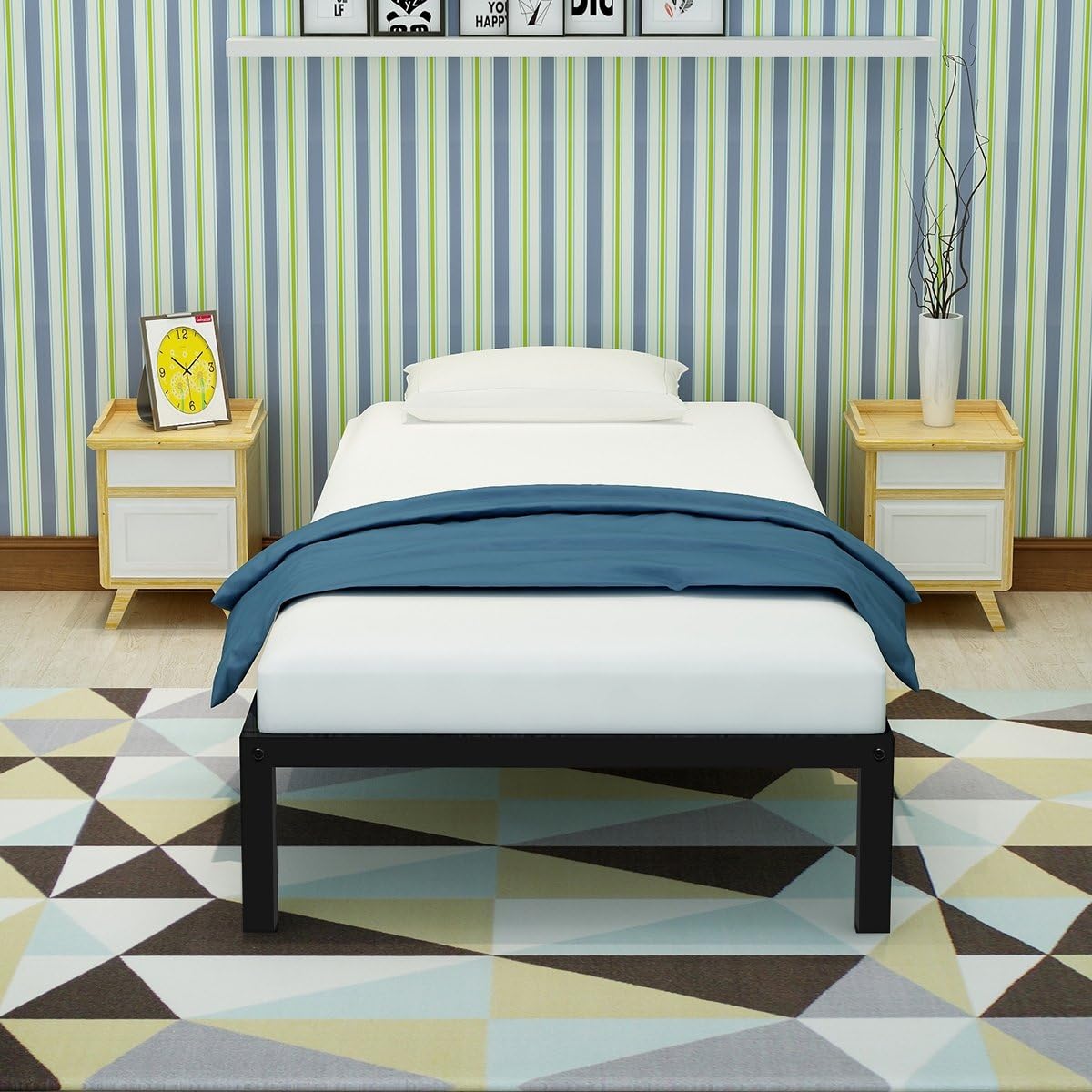Metal Bed Frame Twin Size Mattress Platform Foundation Heavy Duty Steel Slat Non Slip Headboards Black