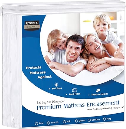 Amazon Com Utopia Bedding Premium 135 Gsm Waterproof Mattress Encasement 360 Protection Zippered Bed Bug Proof Fits 15 Inches Deep Easy Care California King Kitchen Dining