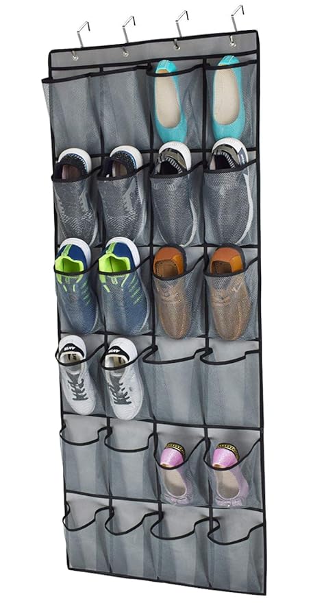 Stylishom Over The Door Shoe Organizer 24 Extra Large Mesh Pockets Closet Hanging Shoe Rack Holder Organizer Shoe Door Hanger Double Stitching With 4 Sturdy Metal Hooks Gray 65 4 X 23 6 Amazon In Home Kitchen
