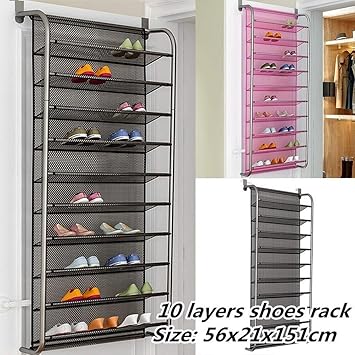Tzamli 10 Tier Shoe Rack Over The Door Shoe Organizer Hanging Shoe Storage Shelf Customized Strong Metal Hooks For Closet Pantry Black 10 Tier Amazon In Home Kitchen