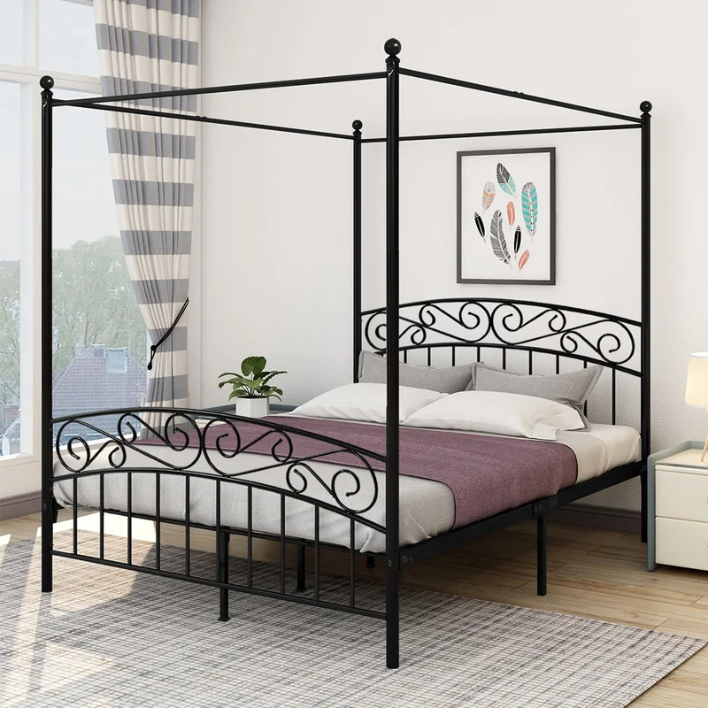 Metal Framed Canopy 4 Posters Platform Bed Frame Strong Steel Mattress No Box Spring Needed Support Bedroom Furniture Queen Size Aliexpress