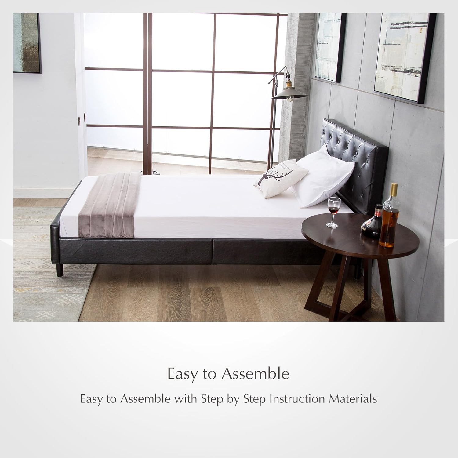 Mecor Upholstered Pu Premium Leather Button Platform Bed Frame No Box Spring Needed Tufted Headboard Footboard Home Kitchen Furniture